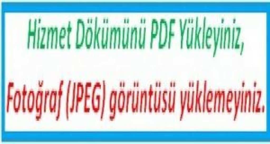 SGK Hizmet Doküm Belgesi E-Devlet üzerinden PDF formatında ve BARKODLU olan indirilmelidir. Fotoğraf (jpeg) görüntüsü YÜKLEMEYİNİZ. Mevzuat gereği Alanında Hizmet/İş Deneyimi yıl (360 Sigortalı İş Günü) için 1 (bir) puan verilmektedir. Bu alana başka bir belge yüklemeyiniz.